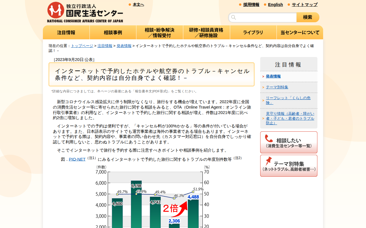 インターネットで予約したホテルや航空券のトラブル-キャンセル条件など、契約内容は自分自身でよく確認!-(発表情報)_国民生活センター