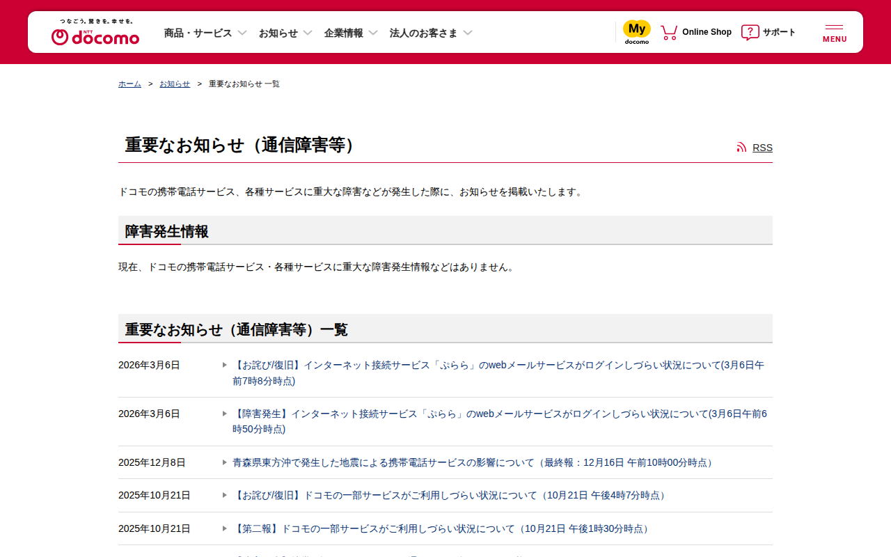 重要なお知らせ(通信障害等) | お知らせ | NTTドコモ