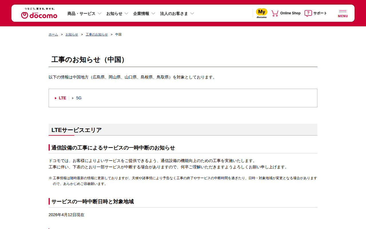 https://www.docomo.ne.jp/info/construction/chugoku2026年4月12日 11:04 JST•アーカイブページ・viewer・ダウンロードは、この保存版を基準に表示されます。