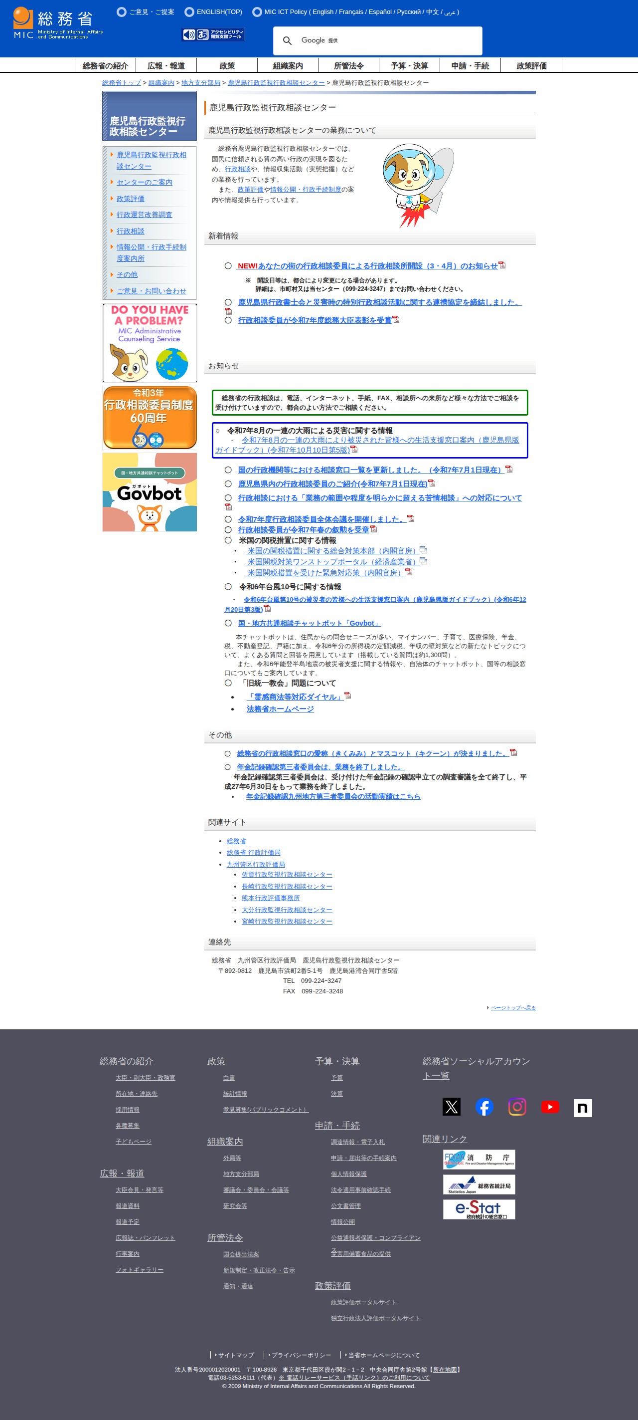 総務省|鹿児島行政監視行政相談センター|鹿児島行政監視行政相談センター - 保存されたスクリーンショット