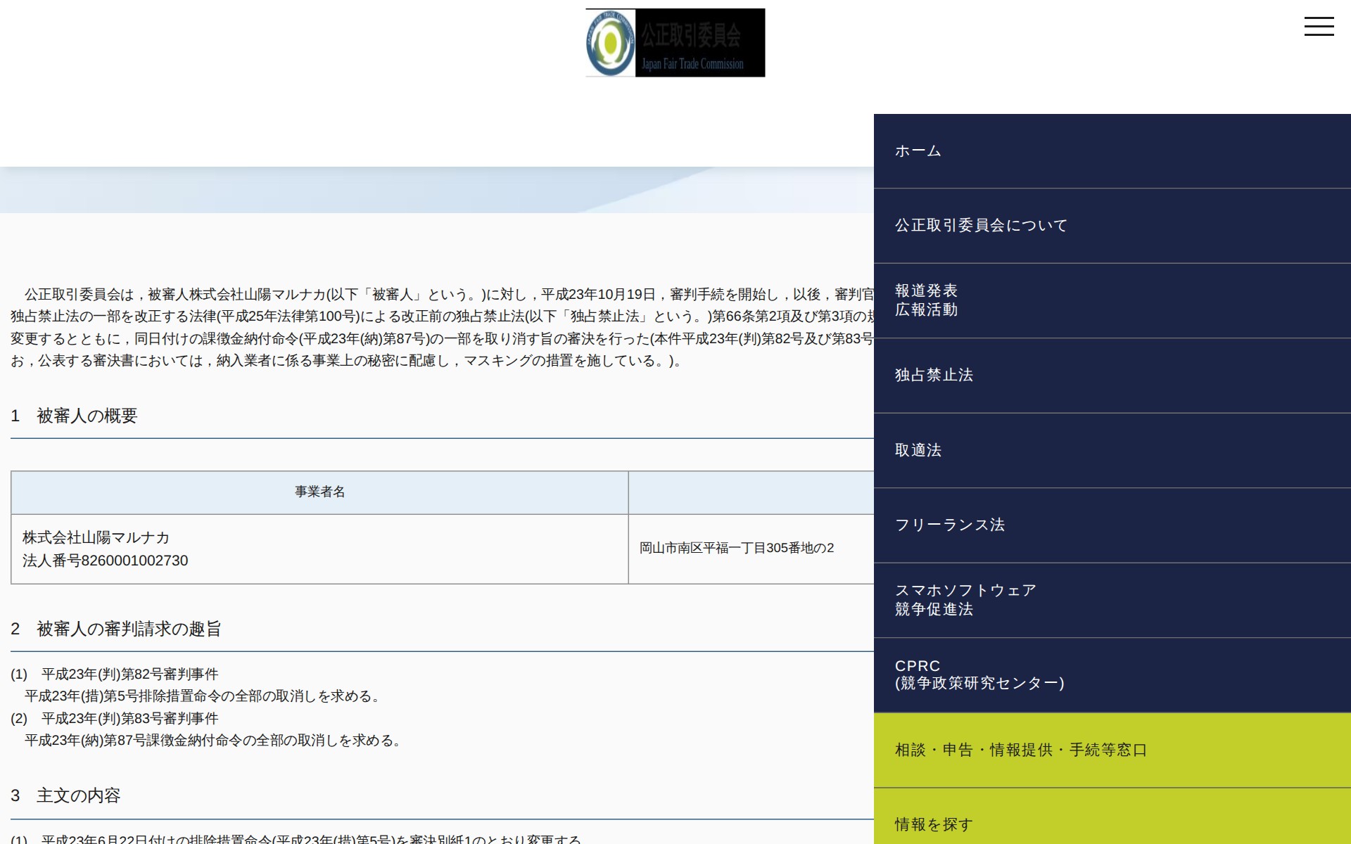 (平成31年2月22日)株式会社山陽マルナカに対する審決について(食品,日用雑貨品,衣料品等の小売業者による優越的地位の濫用事件) | 公正取引委員会