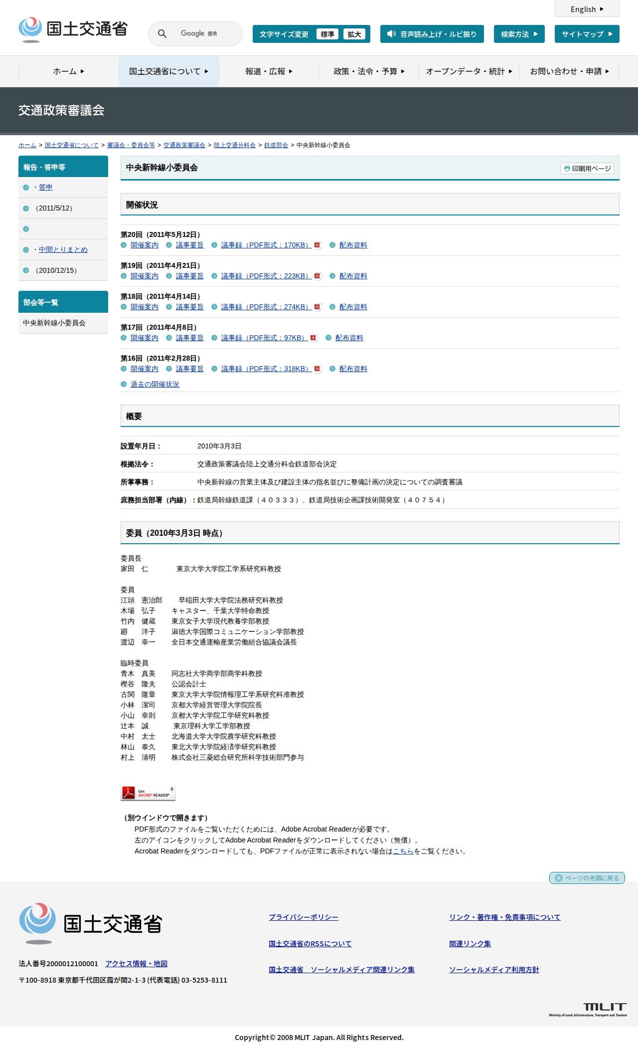 交通政策審議会:中央新幹線小委員会 - 国土交通省 - 保存されたスクリーンショット