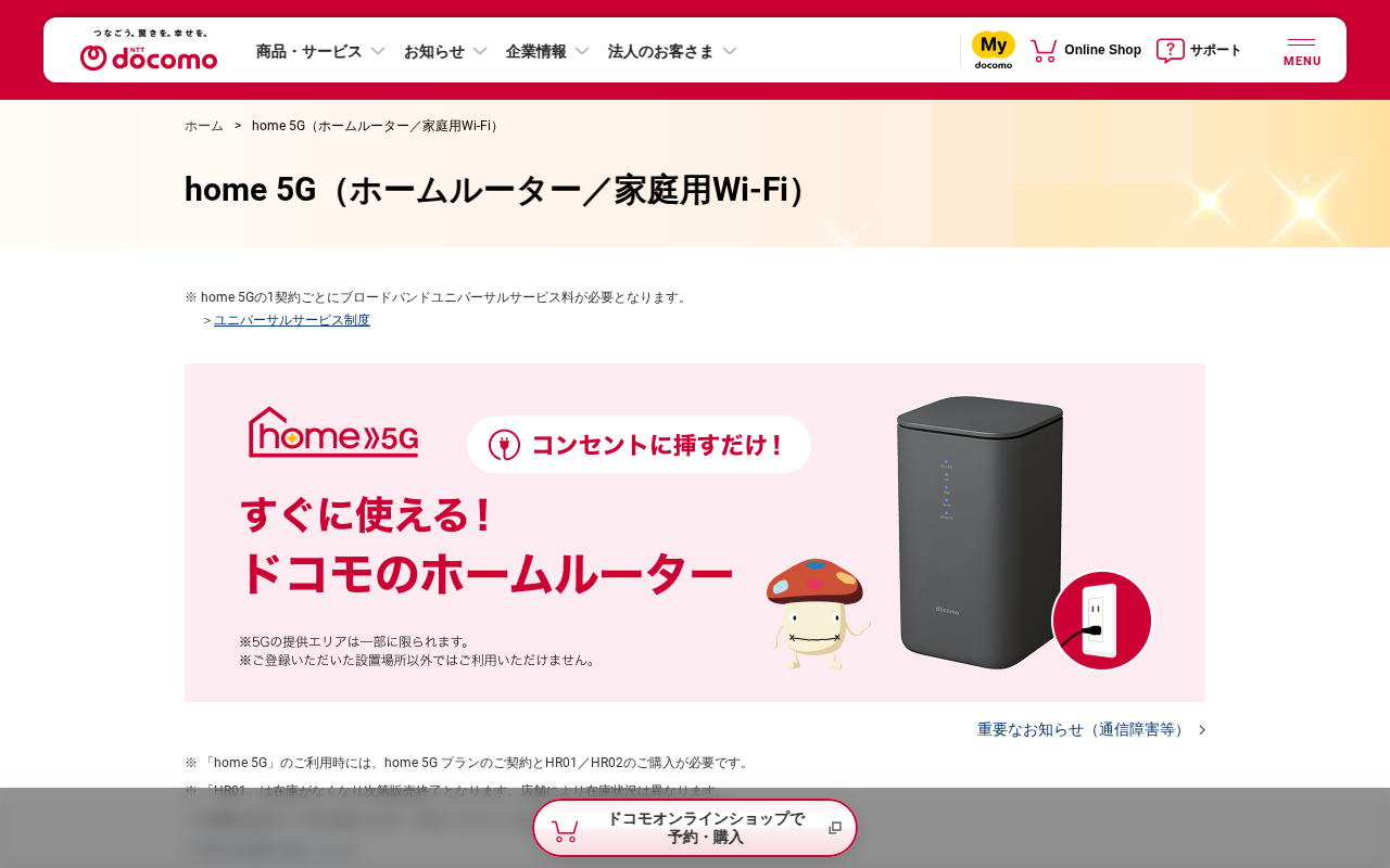 home 5G(ホームルーター/家庭用Wi-Fi) | NTTドコモ