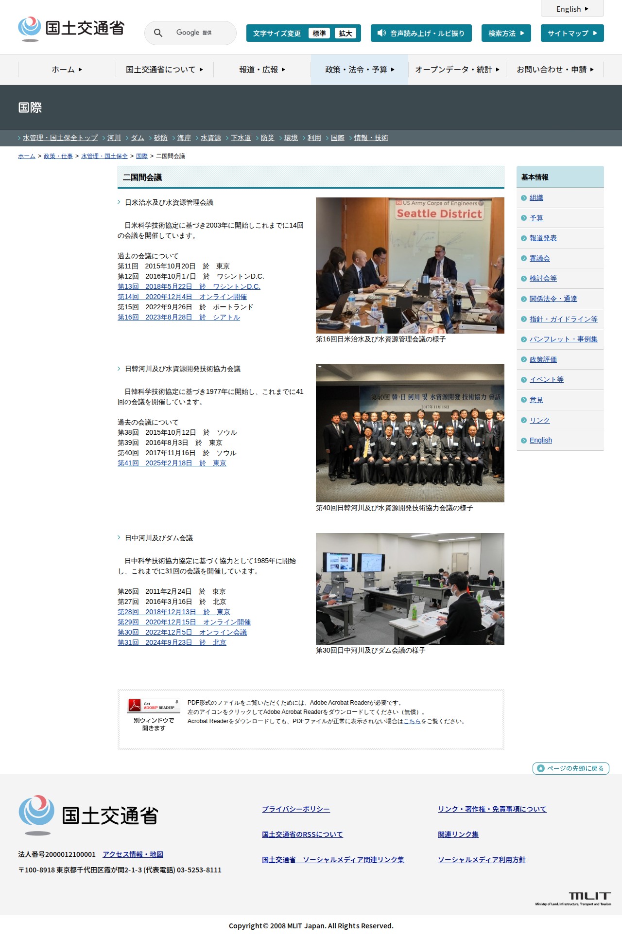 国際 二国間会議 - 国土交通省水管理・国土保全局
