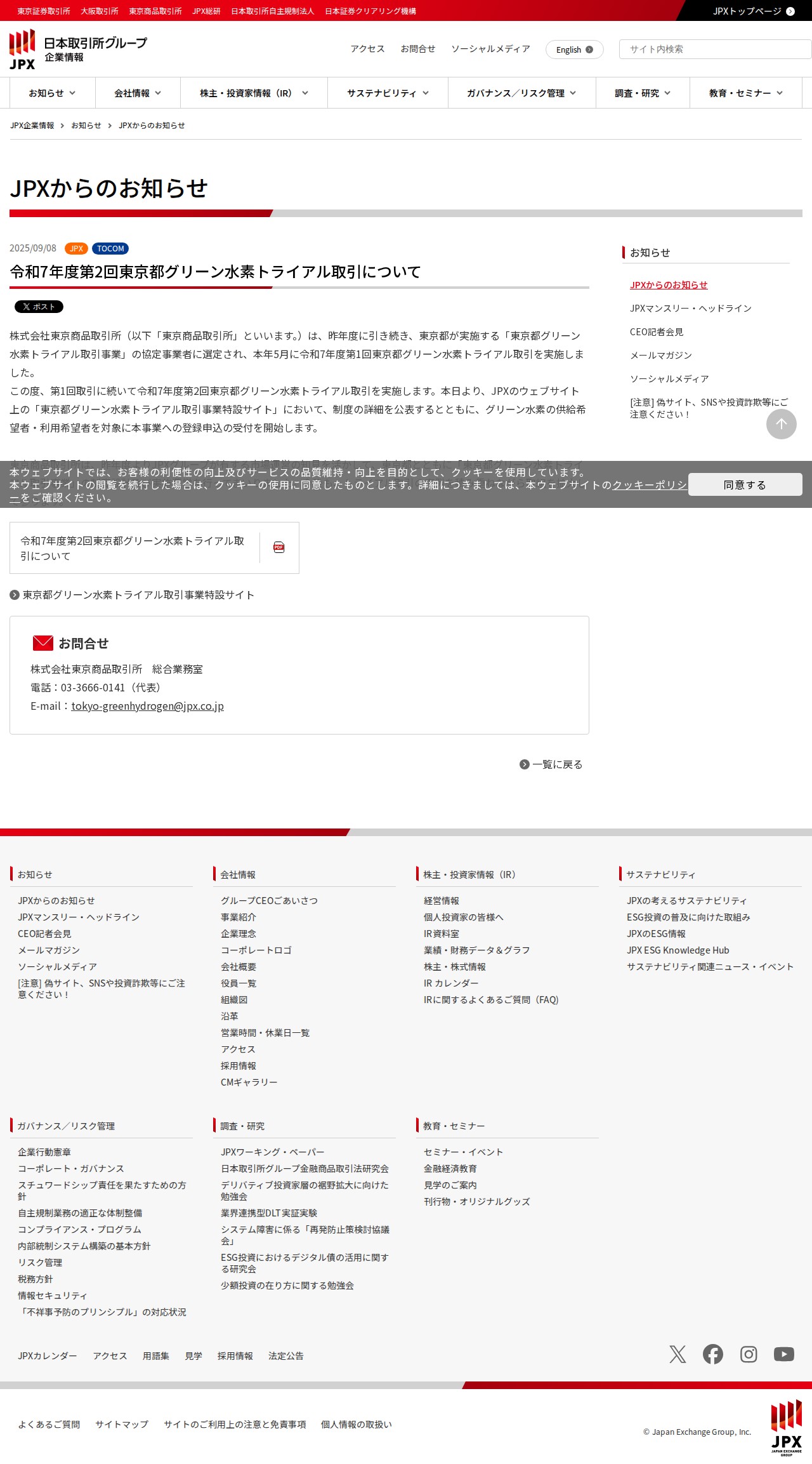 令和7年度第2回東京都グリーン水素トライアル取引について | 日本取引所グループ
