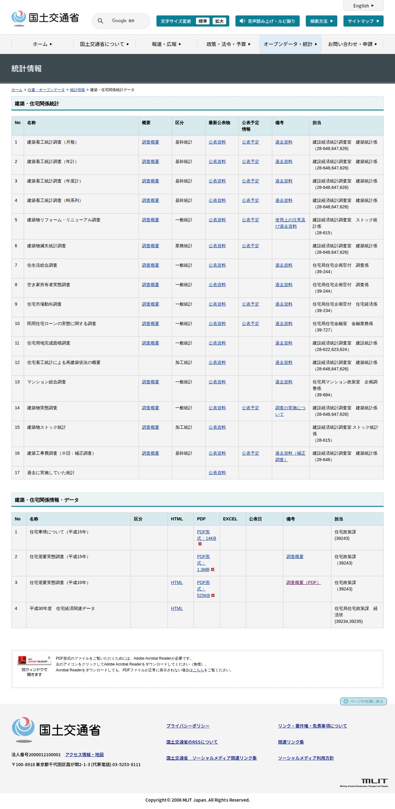 統計情報 - 国土交通省 - 保存されたスクリーンショット