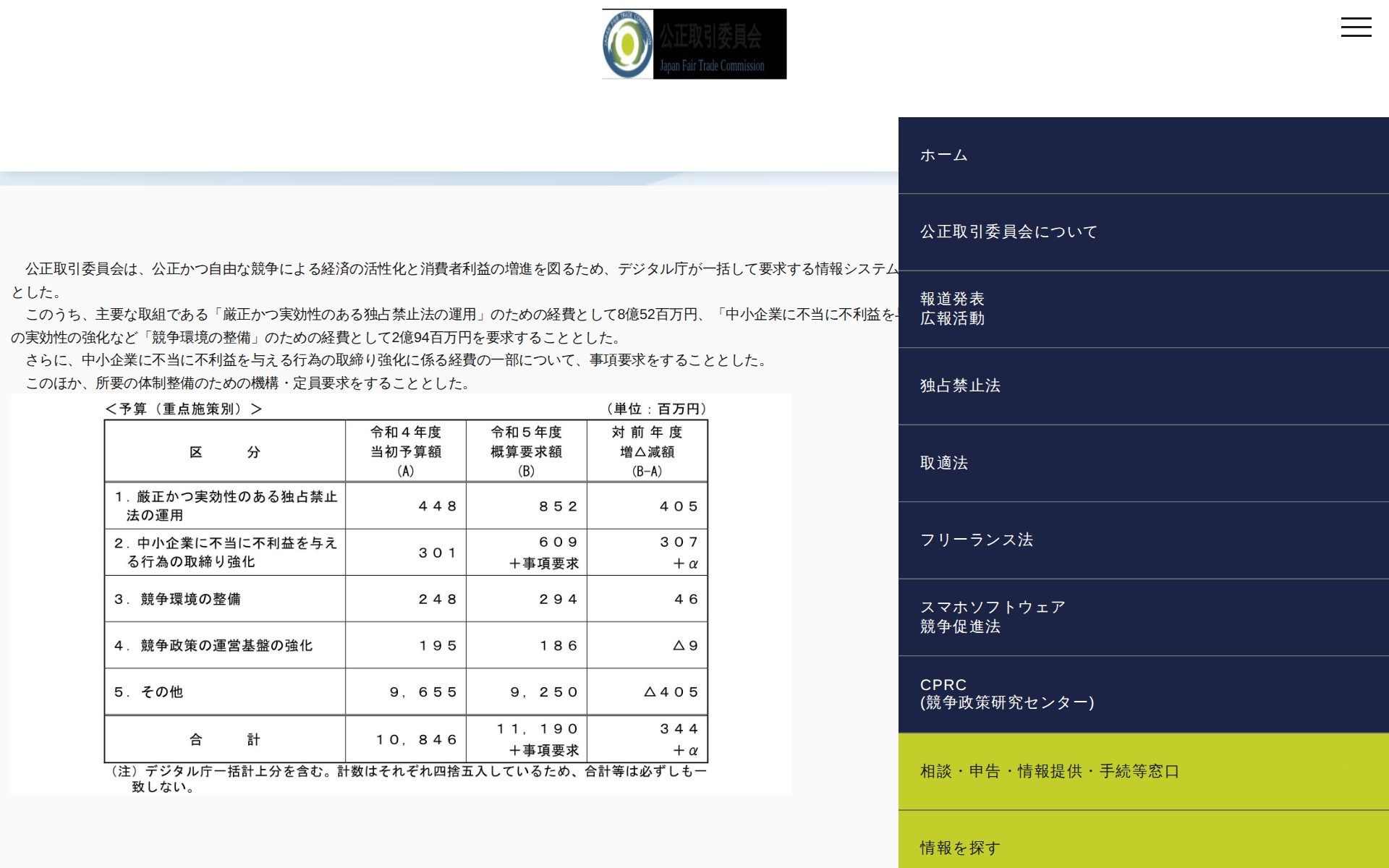 https://www.jftc.go.jp/houdou/pressrelease/2022/aug/220831yosanyoukyuu.html2026年4月4日 13:17 JST•アーカイブページ・viewer・ダウンロードは、この保存版を基準に表示されます。