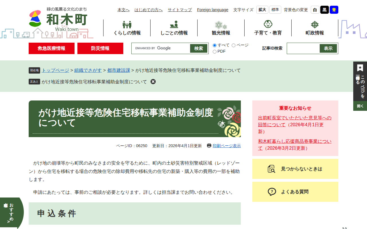 がけ地近接等危険住宅移転事業補助金制度について - 和木町ホームページ