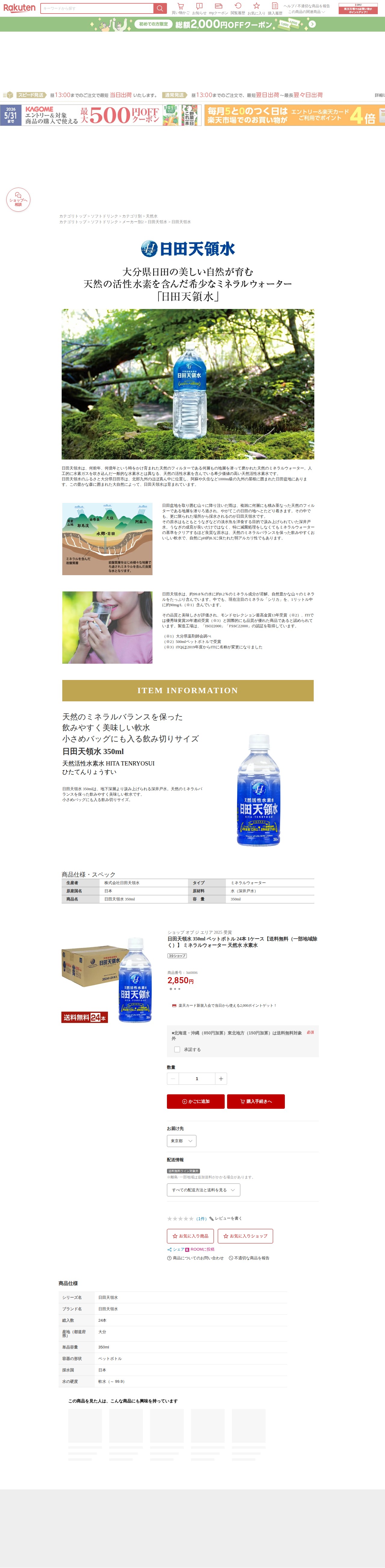 【楽天市場】日田天領水 350ml ペットボトル 24本 1ケース【送料無料(一部地域除く)】 ミネラルウォーター 天然水 水素水:FELICITY Health&Beauty