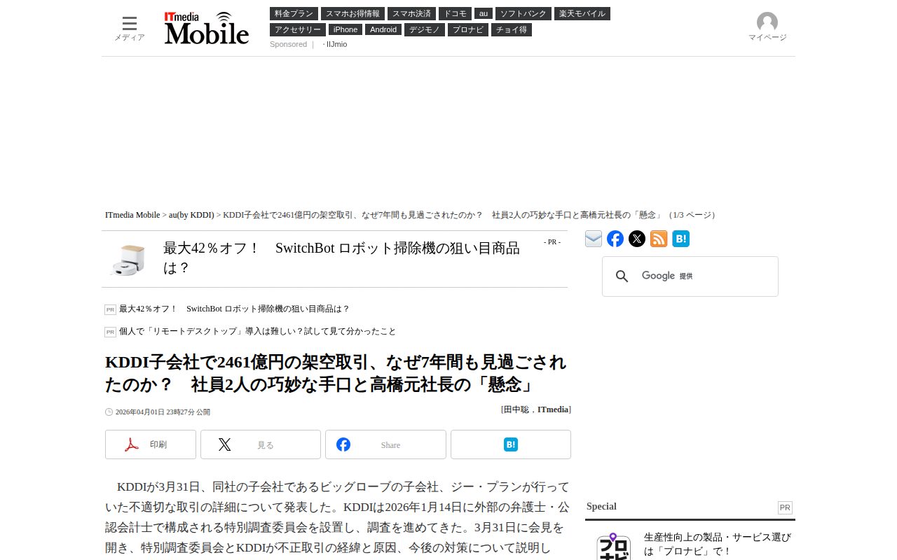 KDDI子会社で2461億円の架空取引、なぜ7年間も見過ごされたのか? 社員2人の巧妙な手口と高橋元社長の「懸念」(1/3 ページ) - ITmedia Mobile