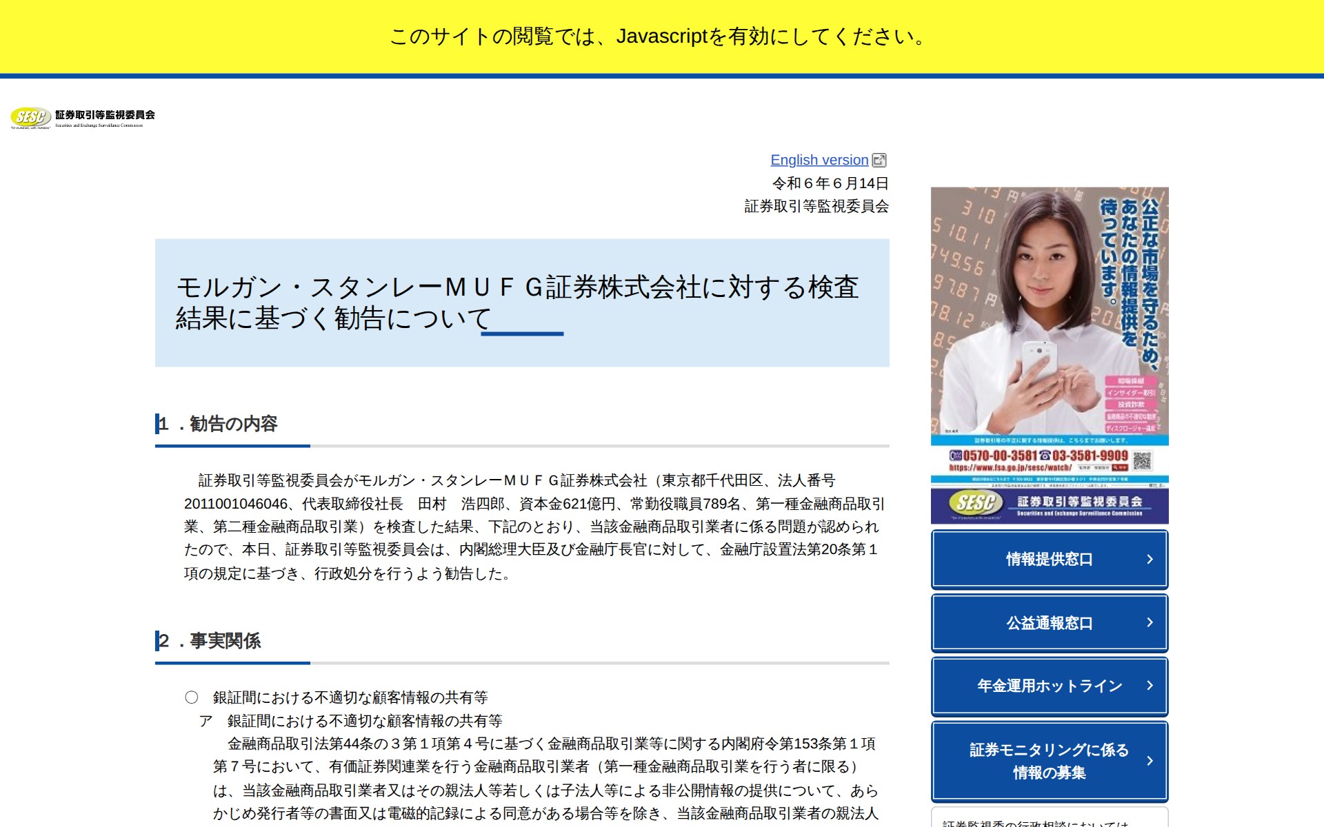 https://www.fsa.go.jp/sesc/news/c_2024/2024/20240614-4.html2026年4月5日 21:30 JST•アーカイブページ・viewer・ダウンロードは、この保存版を基準に表示されます。