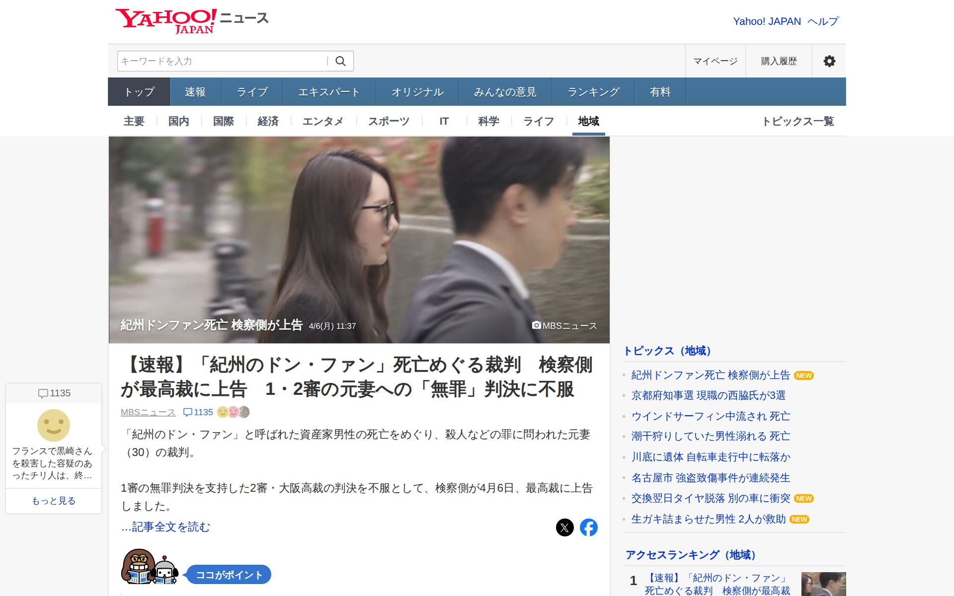紀州ドンファン死亡 検察側が上告 - Yahoo!ニュース