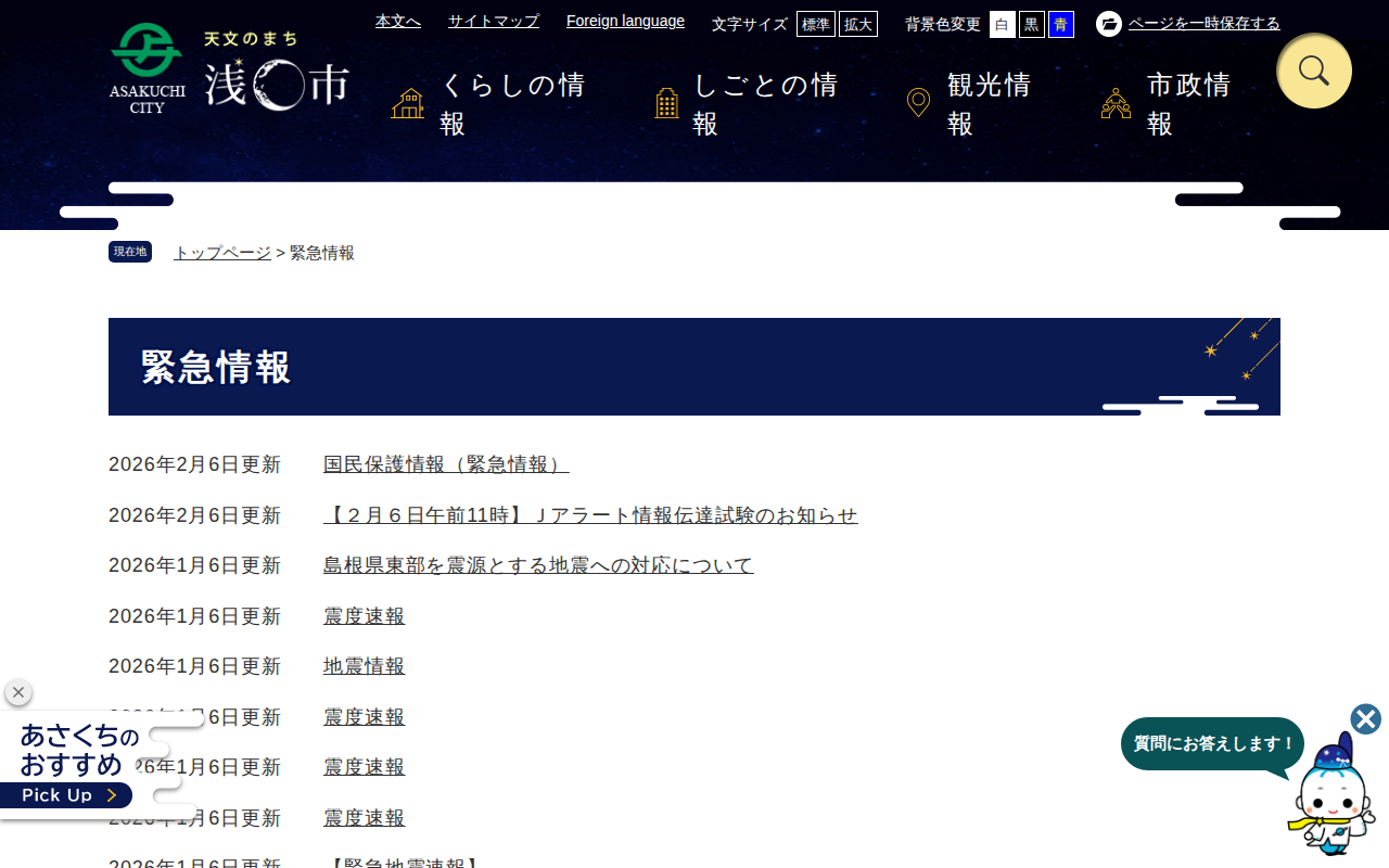 緊急情報 - 浅口市公式ホームページ - 保存されたスクリーンショット
