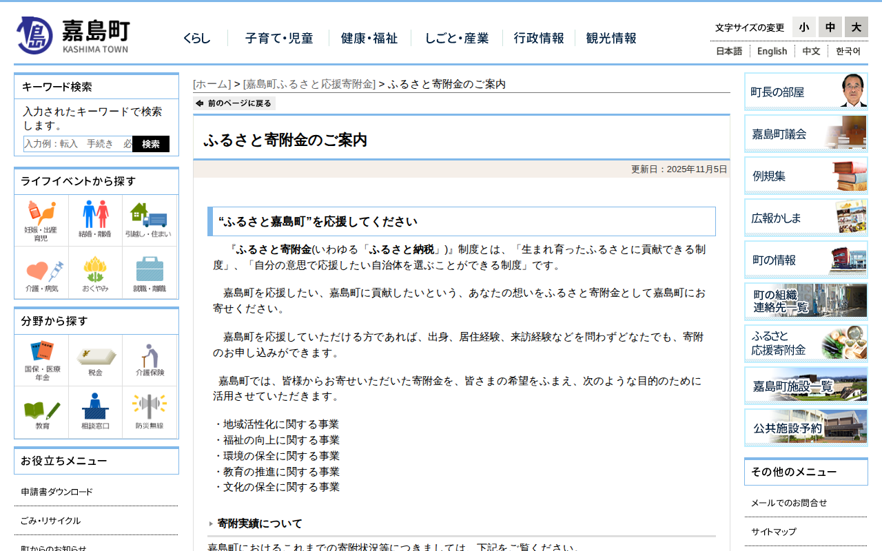 ふるさと寄附金のご案内 - 嘉島町ふるさと応援寄附金|嘉島町 - 保存されたスクリーンショット