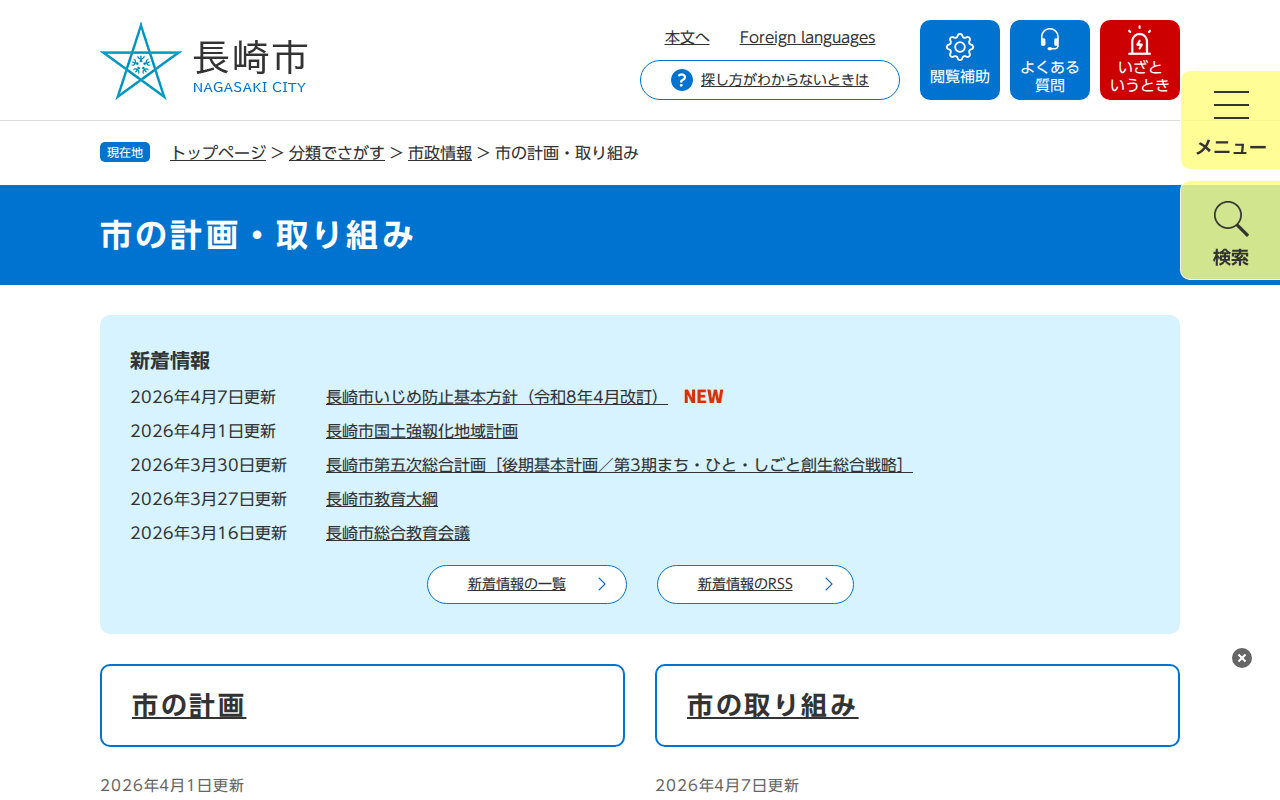 市の計画・取り組み - 長崎市ウェブサイト