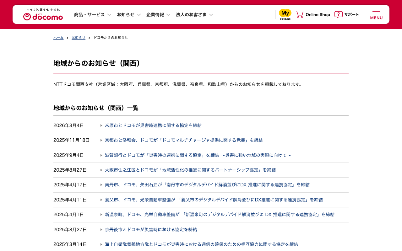 地域からのお知らせ(関西) | お知らせ | NTTドコモ