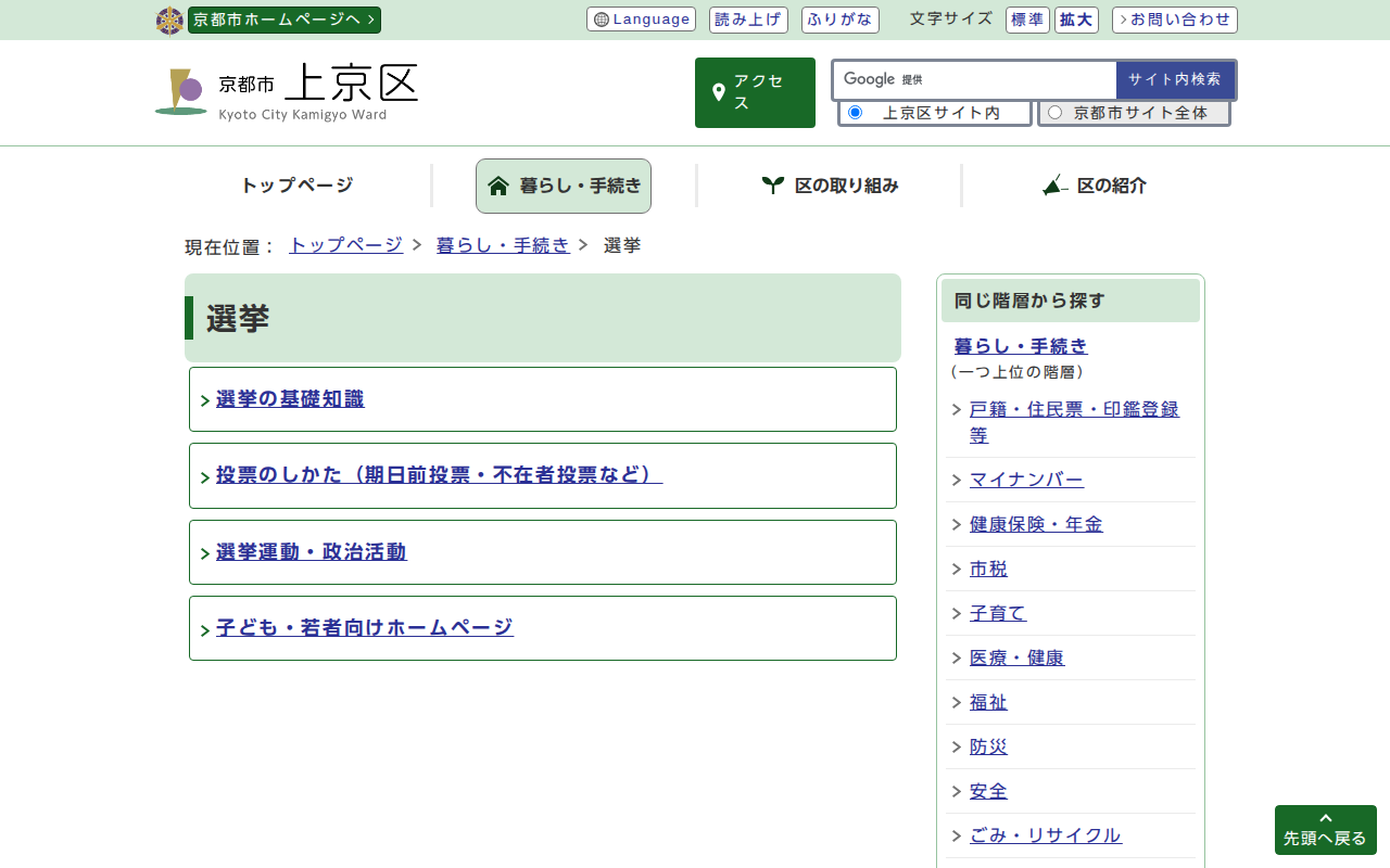 京都市上京区役所:選挙 - 保存されたスクリーンショット