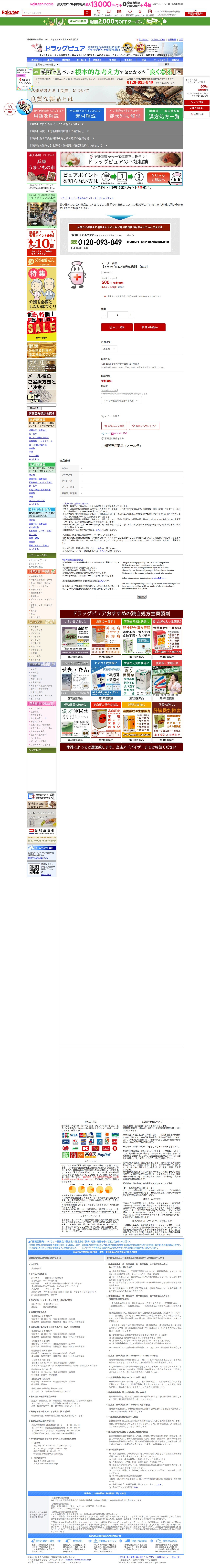 このページは、神戸のドラッグピュア楽天市場店が販売するオーダー商品の商品ページである。価格は600円で送料無料。4月19日15時までの注文で最短4月24日の配送が可能。同店は漢方・免疫専門店として、医薬品、漢方薬、健康食品、ダイエット用品など幅広い商品を取り扱っている。顧客の健康と快適な生活をサポートすることを理念とし、松田誠司代表による相談販売を実施。医薬品販売にあたり安全性確保のため専門相談員による対応を行っている。