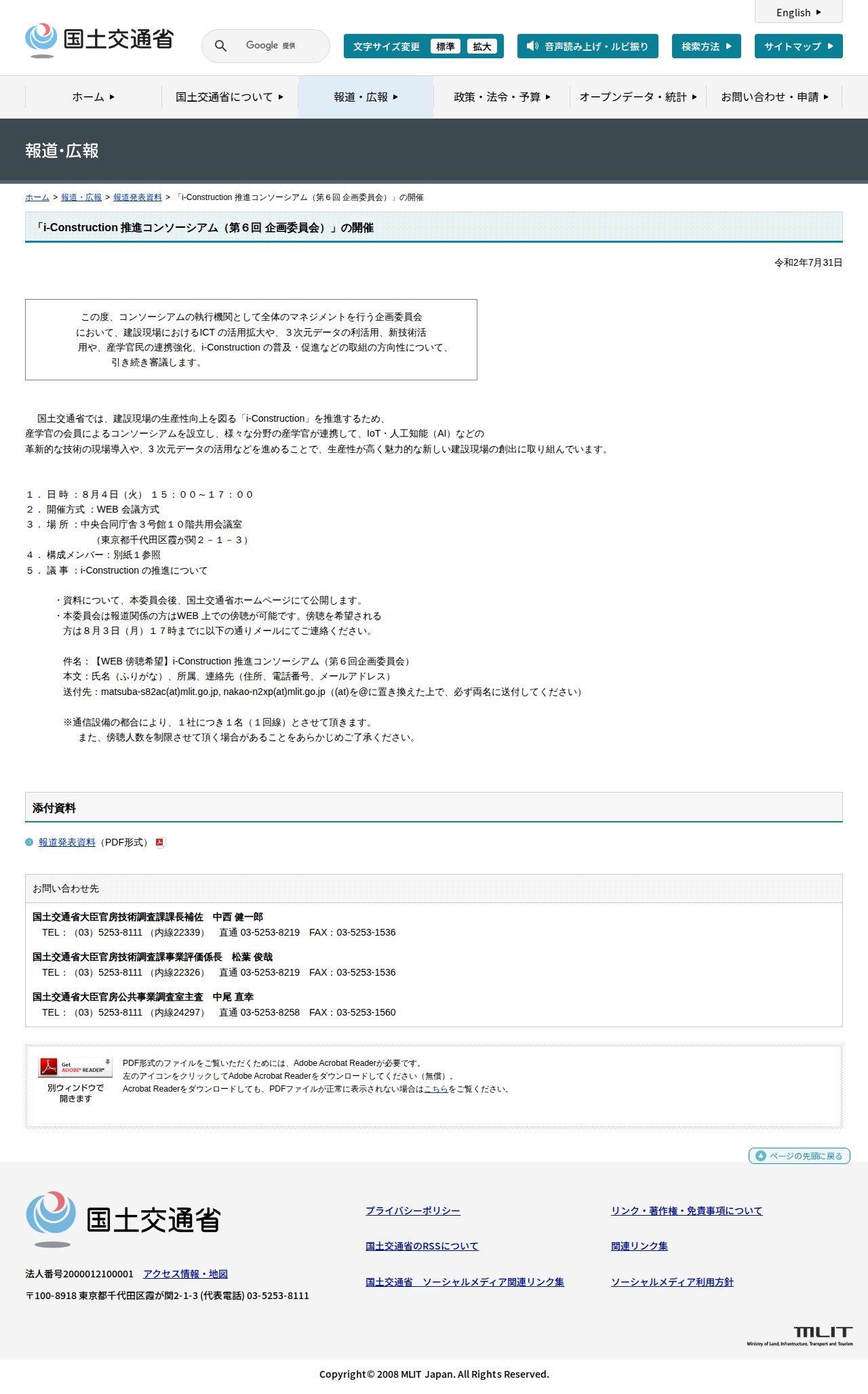 報道発表資料:「i-Construction 推進コンソーシアム(第6回 企画委員会)」の開催 - 国土交通省 - 保存されたスクリーンショット