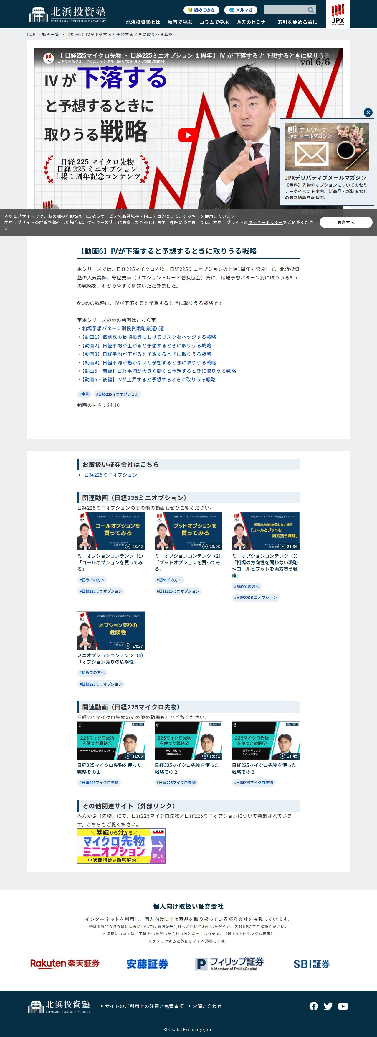 【動画6】IVが下落すると予想するときに取りうる戦略 | 北浜投資塾 - 大阪取引所(日本取引所グループ) - 保存されたスクリーンショット