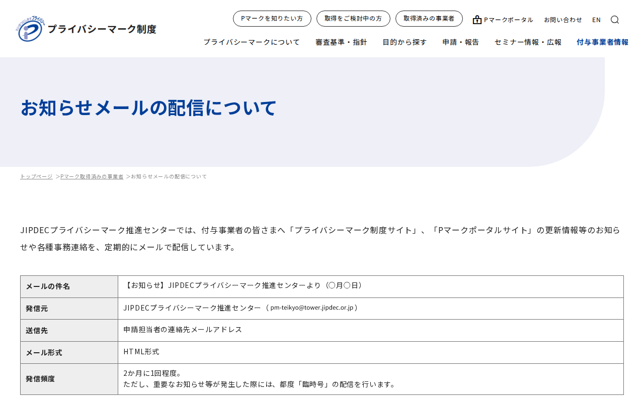 お知らせメールの配信について|Pマーク取得済みの事業者|一般財団法人日本情報経済社会推進協会(JIPDEC)
