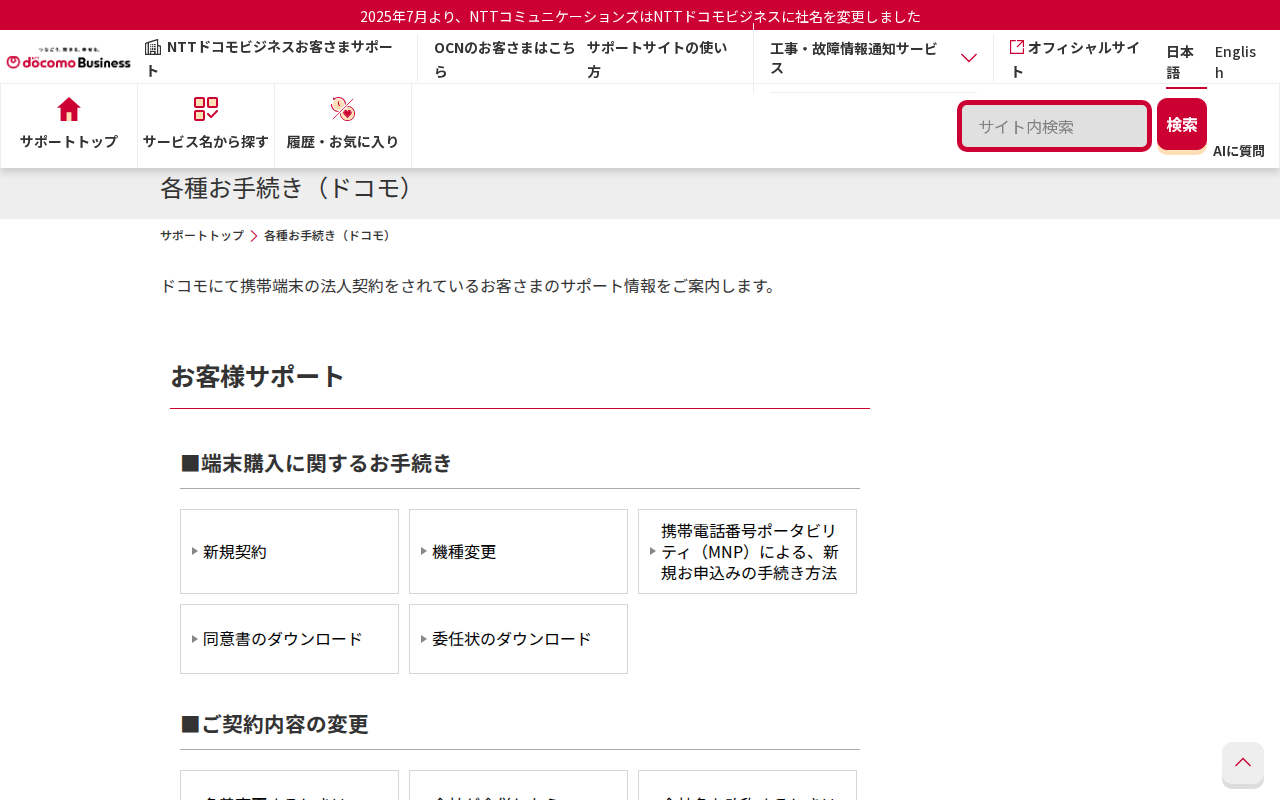 各種お手続き(ドコモ) | NTTドコモビジネス お客さまサポート