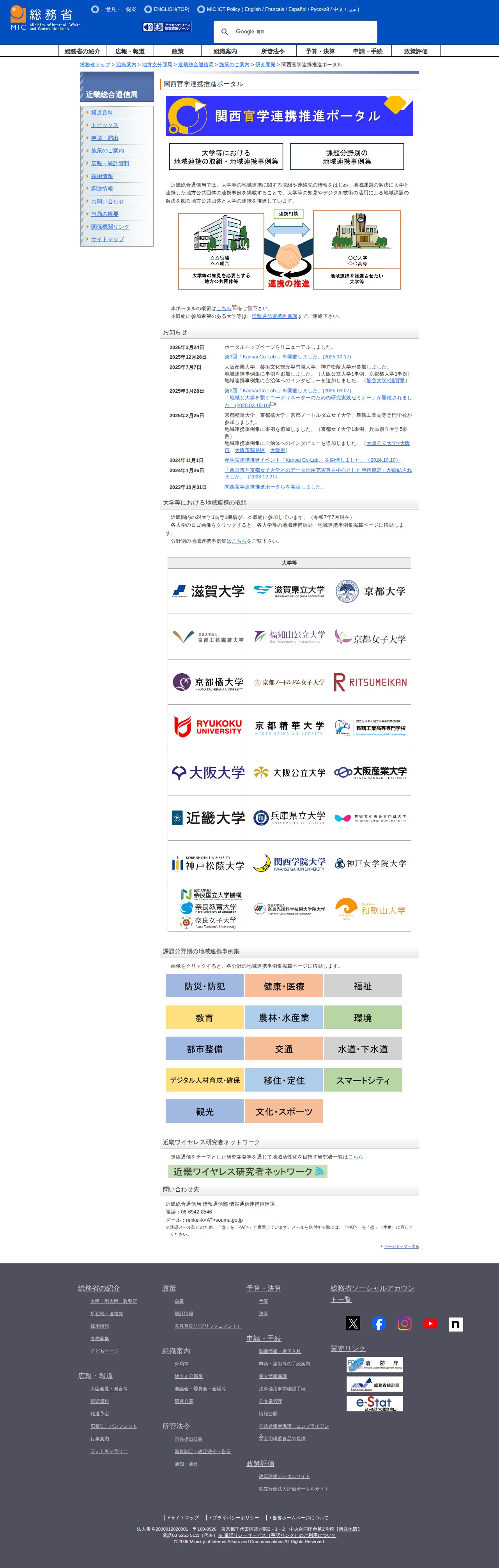 総務省|近畿総合通信局|関西官学連携推進ポータル