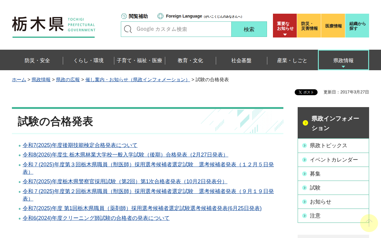栃木県/試験の合格発表 - 保存されたスクリーンショット
