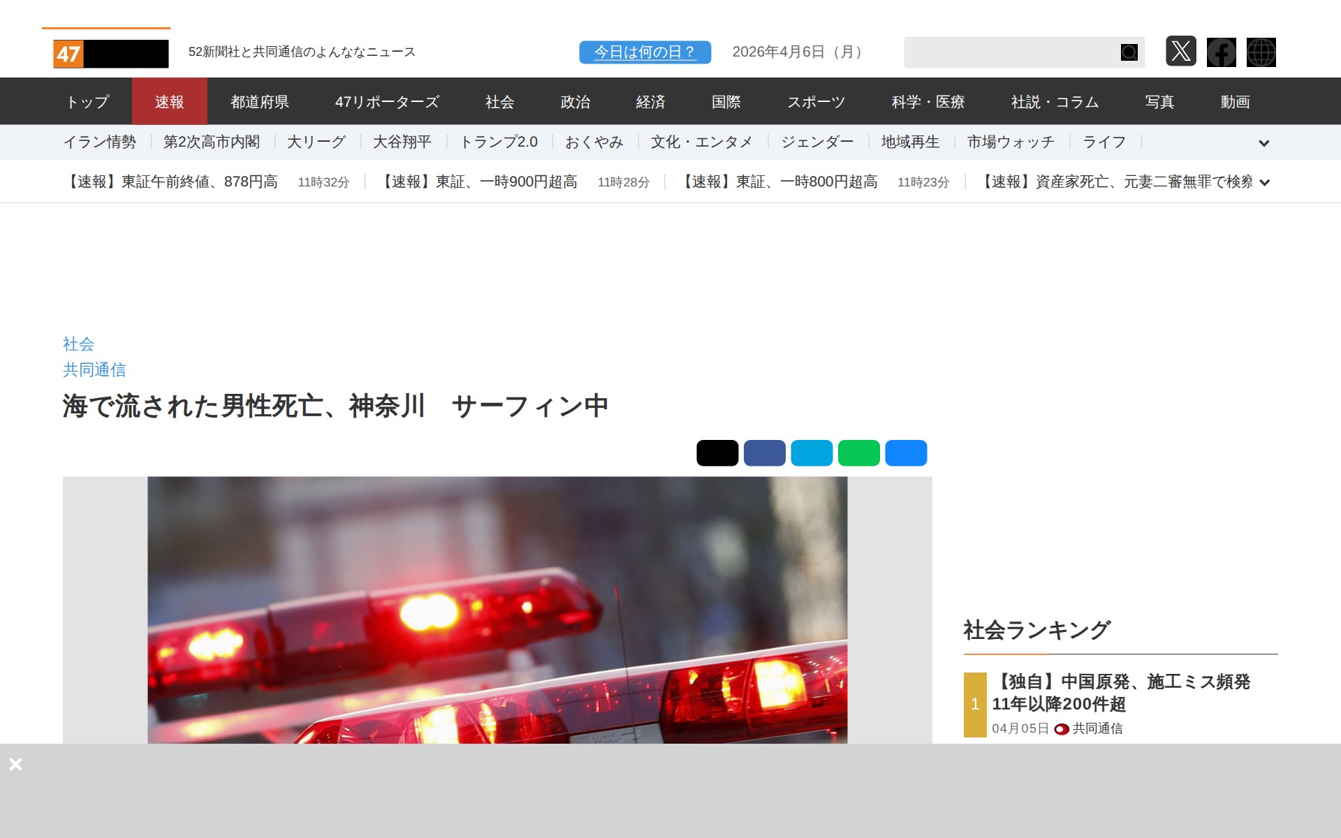 海で流された男性死亡、神奈川 サーフィン中|47NEWS(よんななニュース)