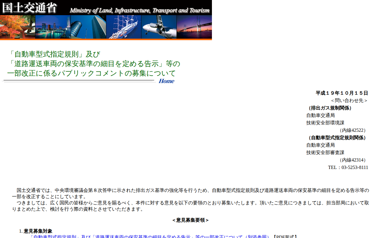 「自動車型式指定規則」及び「道路運送車両の保安基準の細目を定める告示」等の一部改正に係るパブリックコメントの募集について
