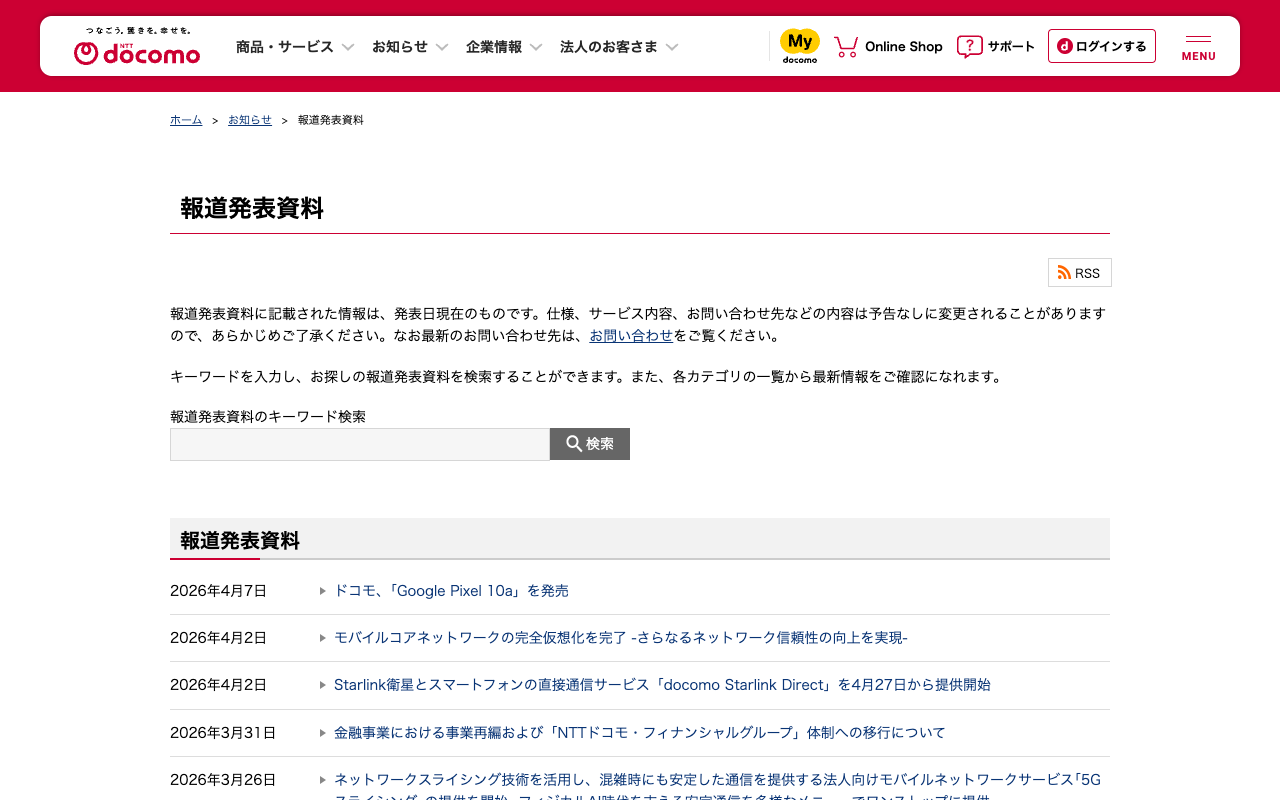 https://www.docomo.ne.jp/info/news_release/index.html2026年4月12日 13:07 JST•アーカイブページ・viewer・ダウンロードは、この保存版を基準に表示されます。