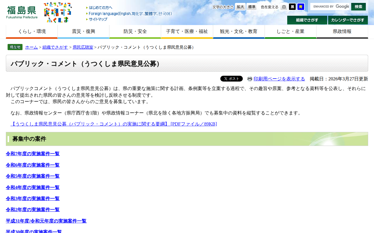 パブリック・コメント(うつくしま県民意見公募) - 福島県ホームページ