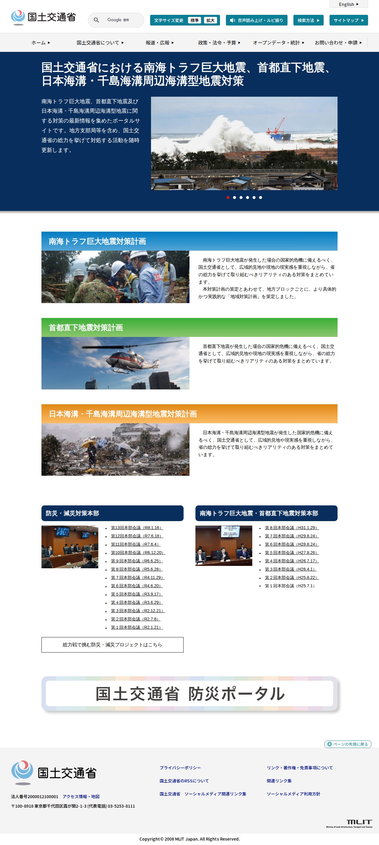 国土交通省|国土交通省における南海トラフ巨大地震、首都直下地震、日本海溝・千島海溝周辺海溝型地震対策|トップページ