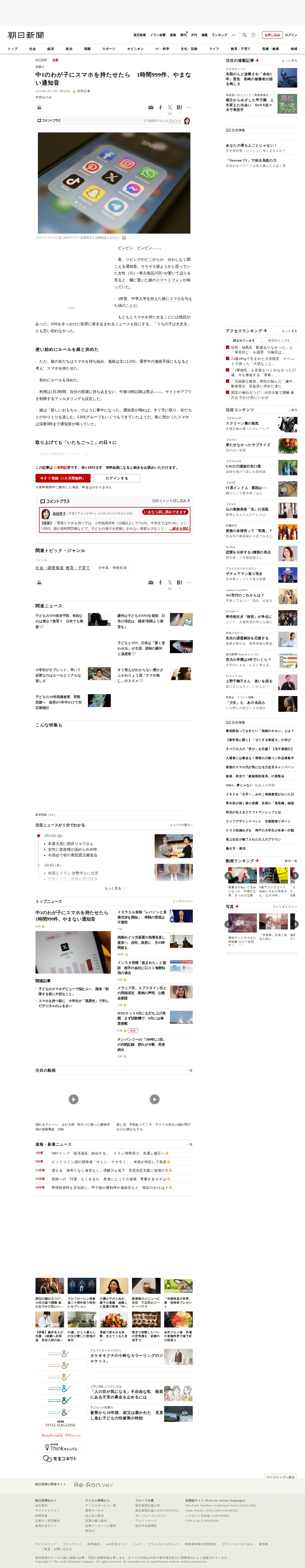 中1のわが子にスマホを持たせたら 1時間999件、やまない通知音:朝日新聞 - 保存されたスクリーンショット