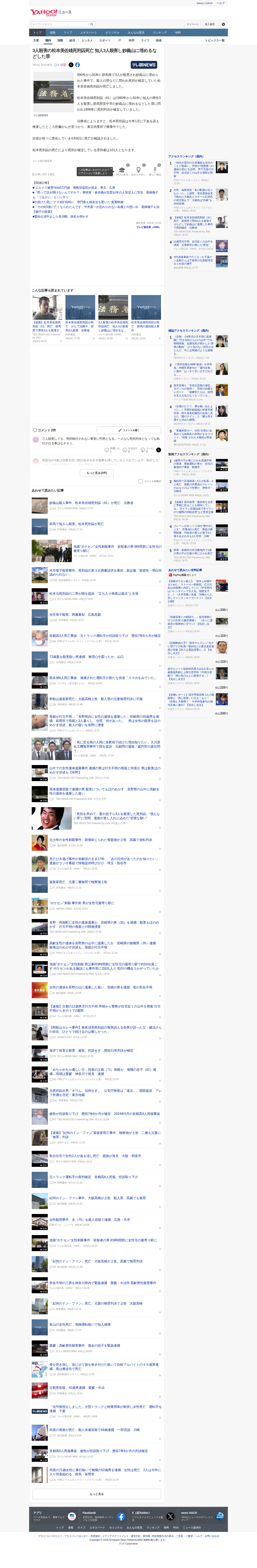 3人殺害の松本美佐雄死刑囚死亡 知人3人殺害し妙義山に埋めるなどした罪(テレビ朝日系(ANN)) - Yahoo!ニュース