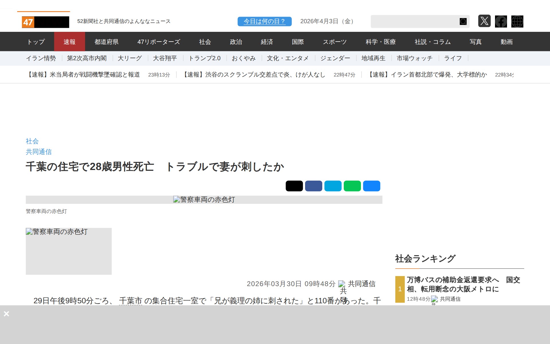 千葉の住宅で28歳男性死亡 トラブルで妻が刺したか|47NEWS(よんななニュース)