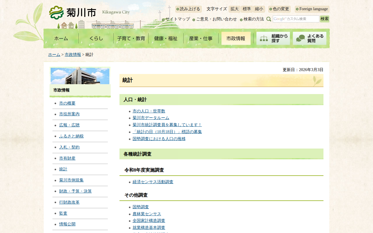 http://www.city.kikugawa.shizuoka.jp/kikakuseisaku/toukei.html2026年4月9日 07:09 JST•アーカイブページ・viewer・ダウンロードは、この保存版を基準に表示されます。