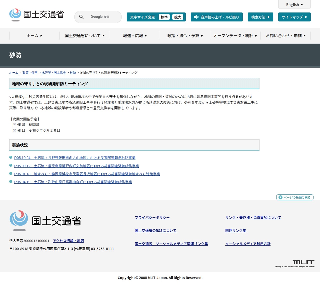 砂防:地域の守り手との現場発砂防ミーティング - 国土交通省 - 保存されたスクリーンショット