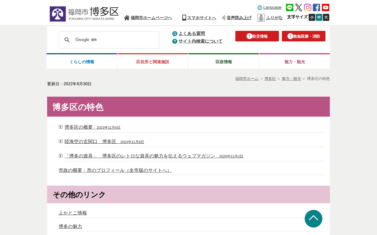 福岡市 博多区の特色 - 保存されたスクリーンショット