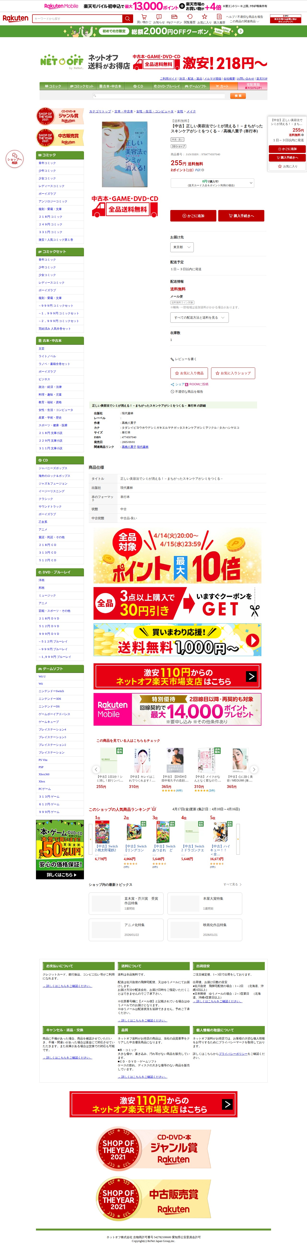 【楽天市場】【中古】正しい美容法でシミが消える!−まちがったスキンケアがシミをつくる− / 高橋八重子 (単行本):ネットオフ 送料がお得店 - 保存されたスクリーンショット