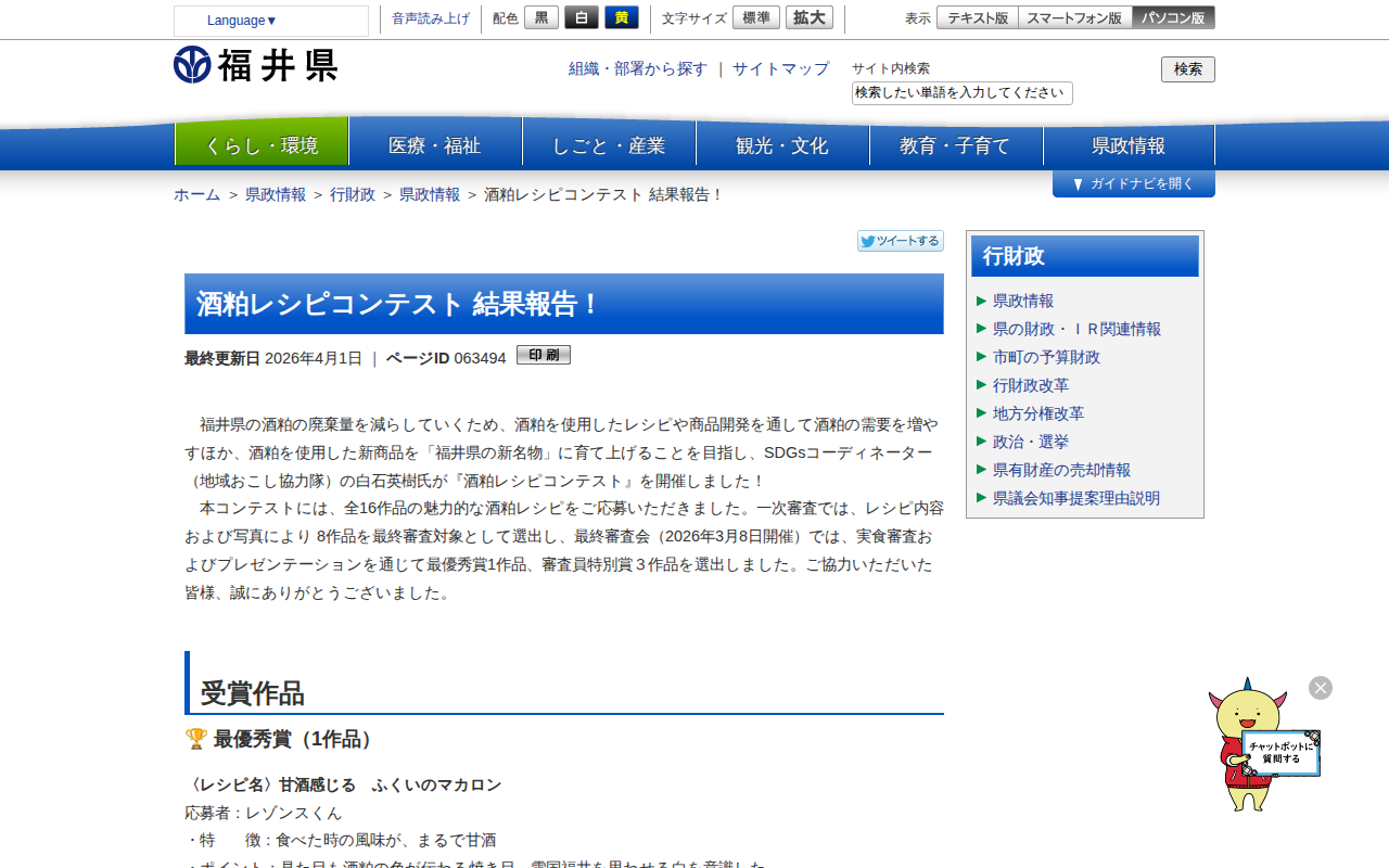 酒粕レシピコンテスト 結果報告! | 福井県ホームページ - 保存されたスクリーンショット