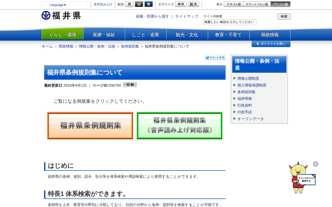 福井県条例規則集について | 福井県ホームページ - 保存されたスクリーンショット