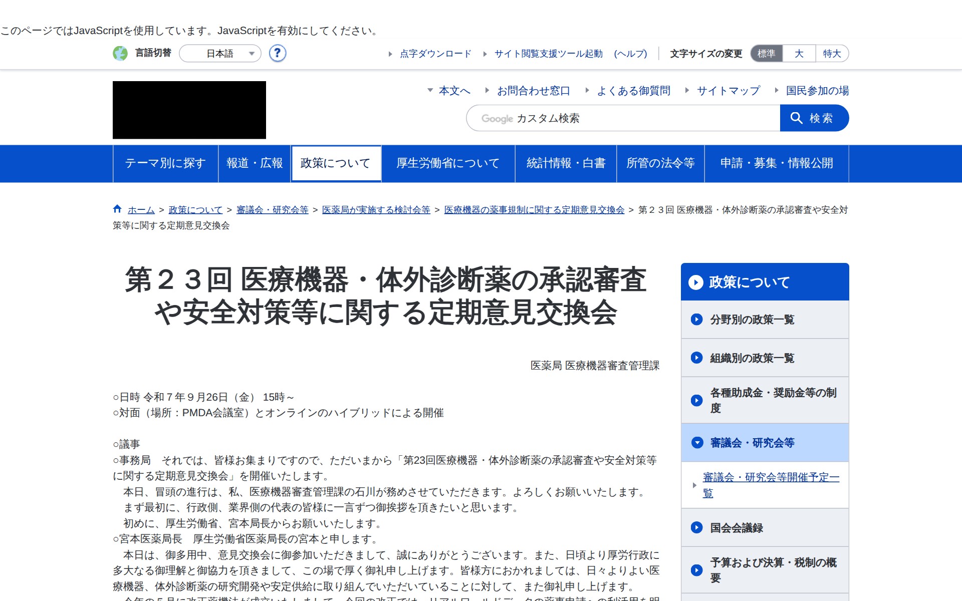 第23回 医療機器・体外診断薬の承認審査や安全対策等に関する定期意見交換会 議事録 |厚生労働省