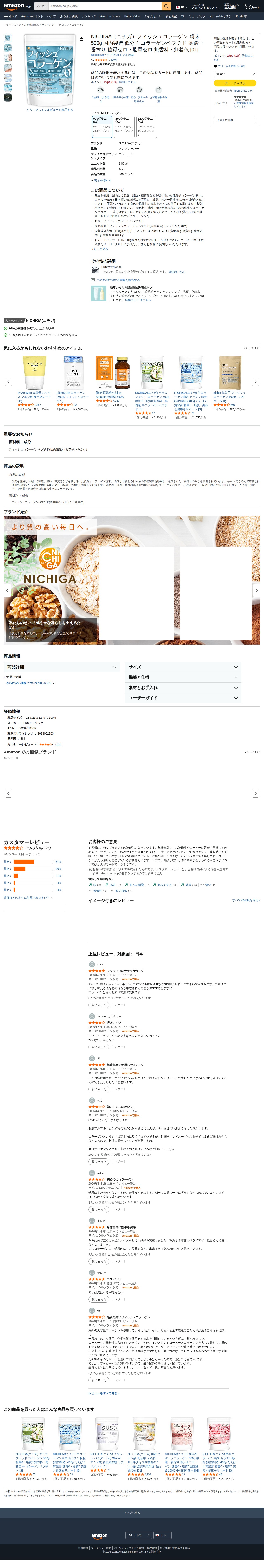 ![Amazon | NICHIGA(ニチガ)フィッシュコラーゲン 粉末 500g 国内製造 低分子 コラーゲンペプチド 厳選一番搾り 糖質ゼロ・脂質ゼロ 無香料・無着色 [01] | NICHIGA(ニチガ) | コラーゲン - 保存されたスクリーンショット](https://pub-f6fa8ca7bebe4069bff3224f9a8f5334.r2.dev