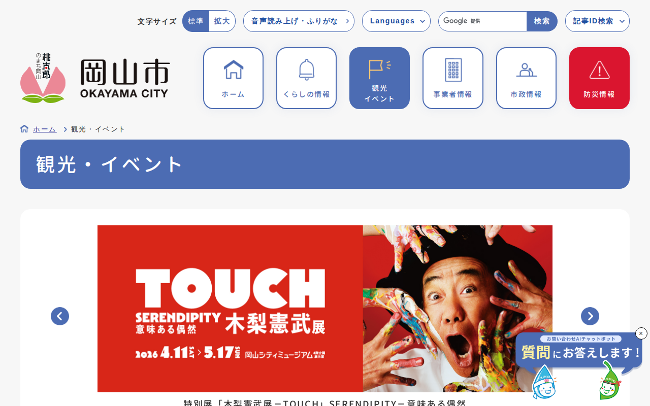 観光・イベント | 岡山市 - 保存されたスクリーンショット