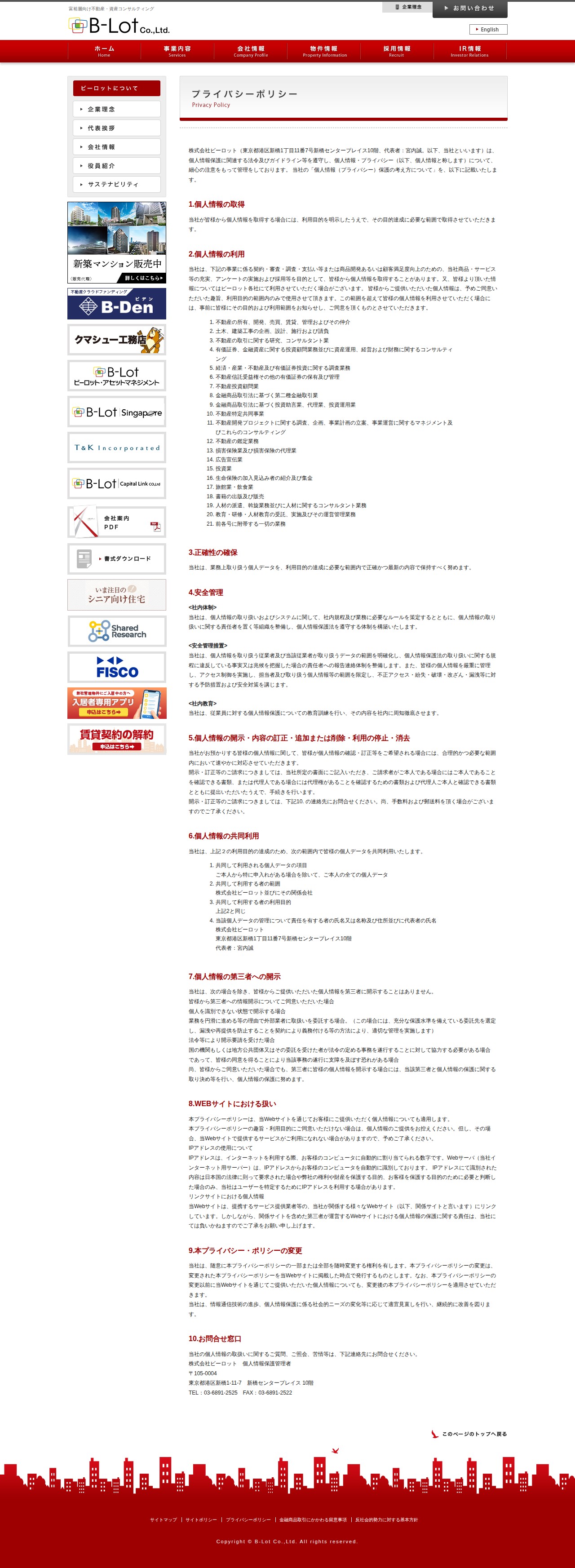 プライバシーポリシー | ビーロット 富裕層向け不動産・資産コンサルティング