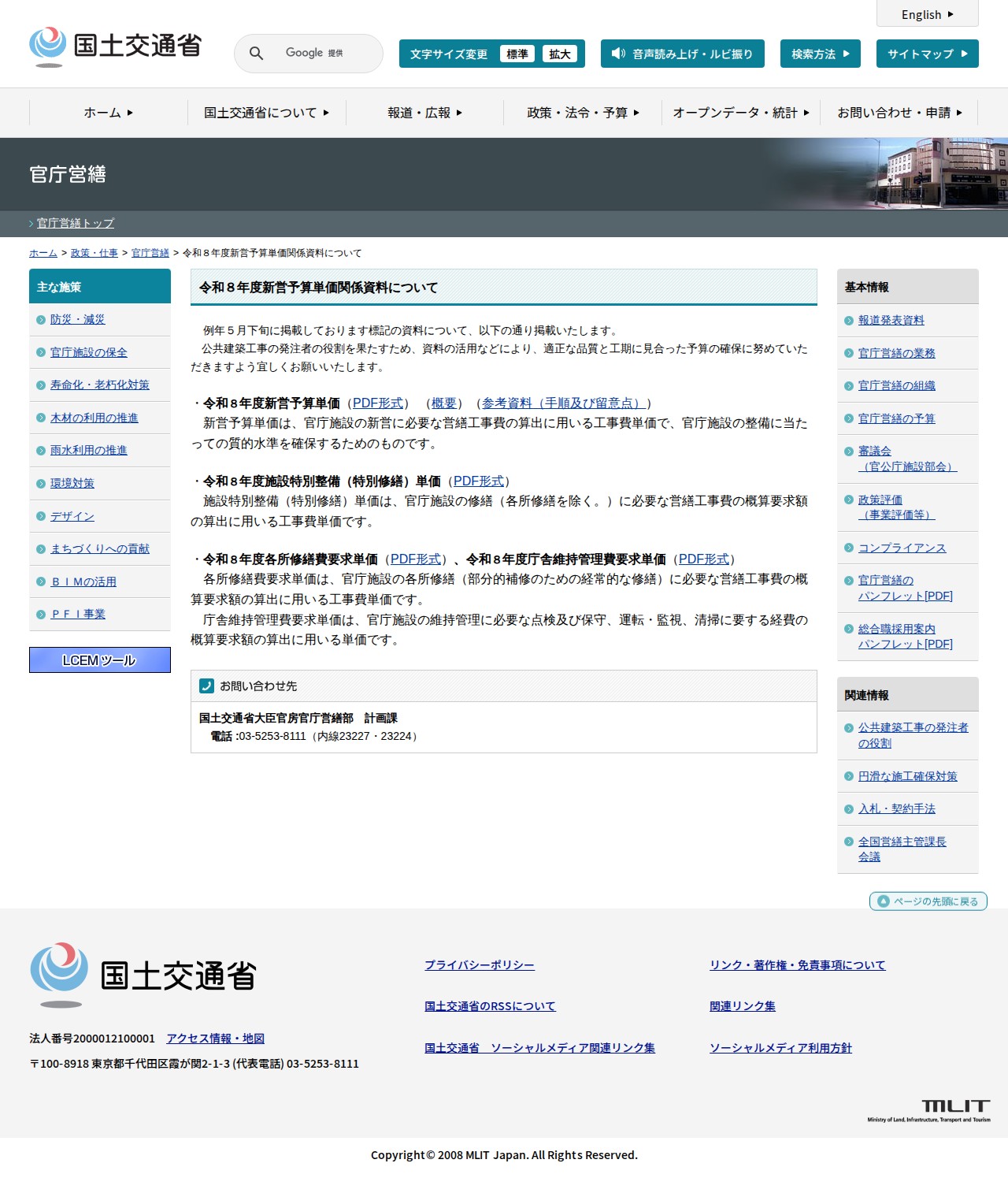 官庁営繕:令和8年度新営予算単価関係資料について - 国土交通省