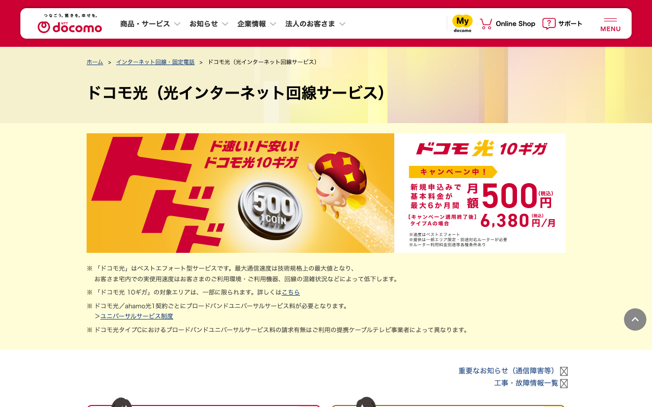 ドコモ光(光インターネット回線サービス) | インターネット回線・固定電話 | NTTドコモ