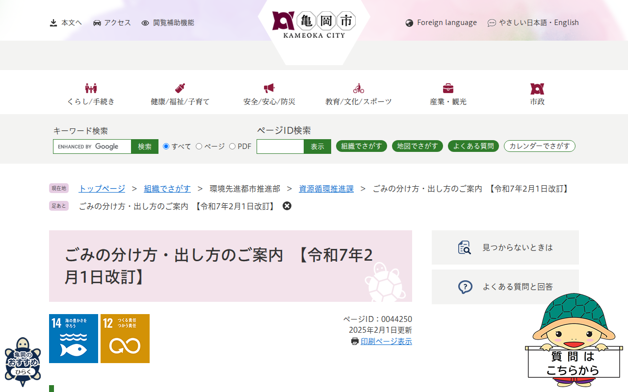 ごみの分け方・出し方のご案内 【令和7年2月1日改訂】 - 亀岡市公式ホームページ