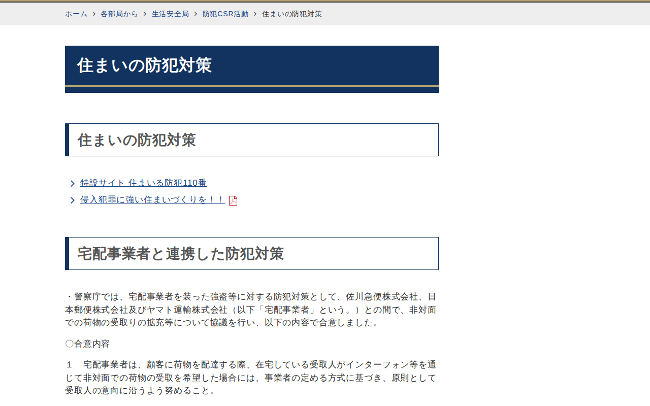住まいの防犯対策|警察庁Webサイト - 保存されたスクリーンショット